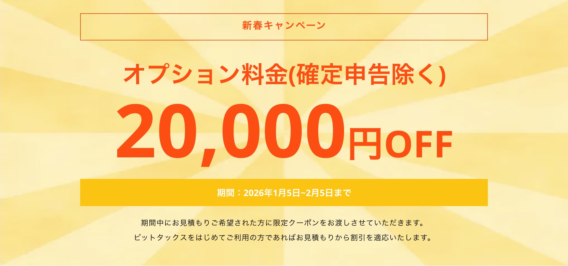 ビットタックスをご検討いただきありがとうございます。お見積り希望の方は、見積り希望とご入力のうえ送信をお願いします。送信ボタンを押した後、ご案内メールを送信させていただきます。10分以内に返信が届かない場合、迷惑メールフォルダやゴミ箱に振り分けられている可能性がありますので、一度ご確認頂きますようお願い致します。