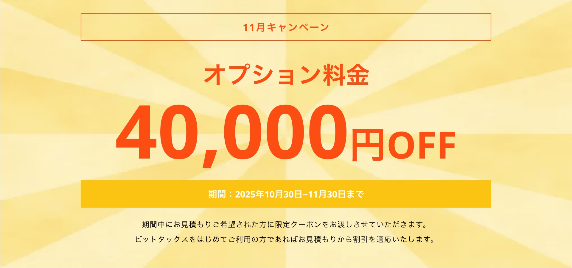 ビットタックスをご検討いただきありがとうございます。お見積り希望の方は、見積り希望とご入力のうえ送信をお願いします。送信ボタンを押した後、ご案内メールを送信させていただきます。10分以内に返信が届かない場合、迷惑メールフォルダやゴミ箱に振り分けられている可能性がありますので、一度ご確認頂きますようお願い致します。